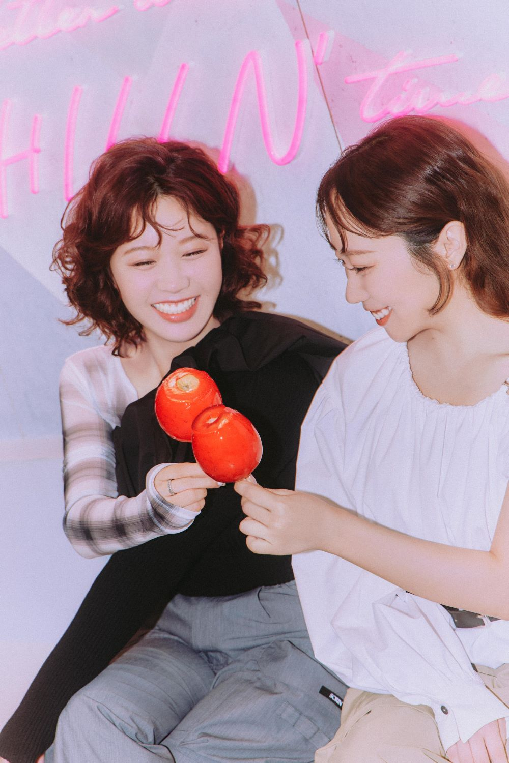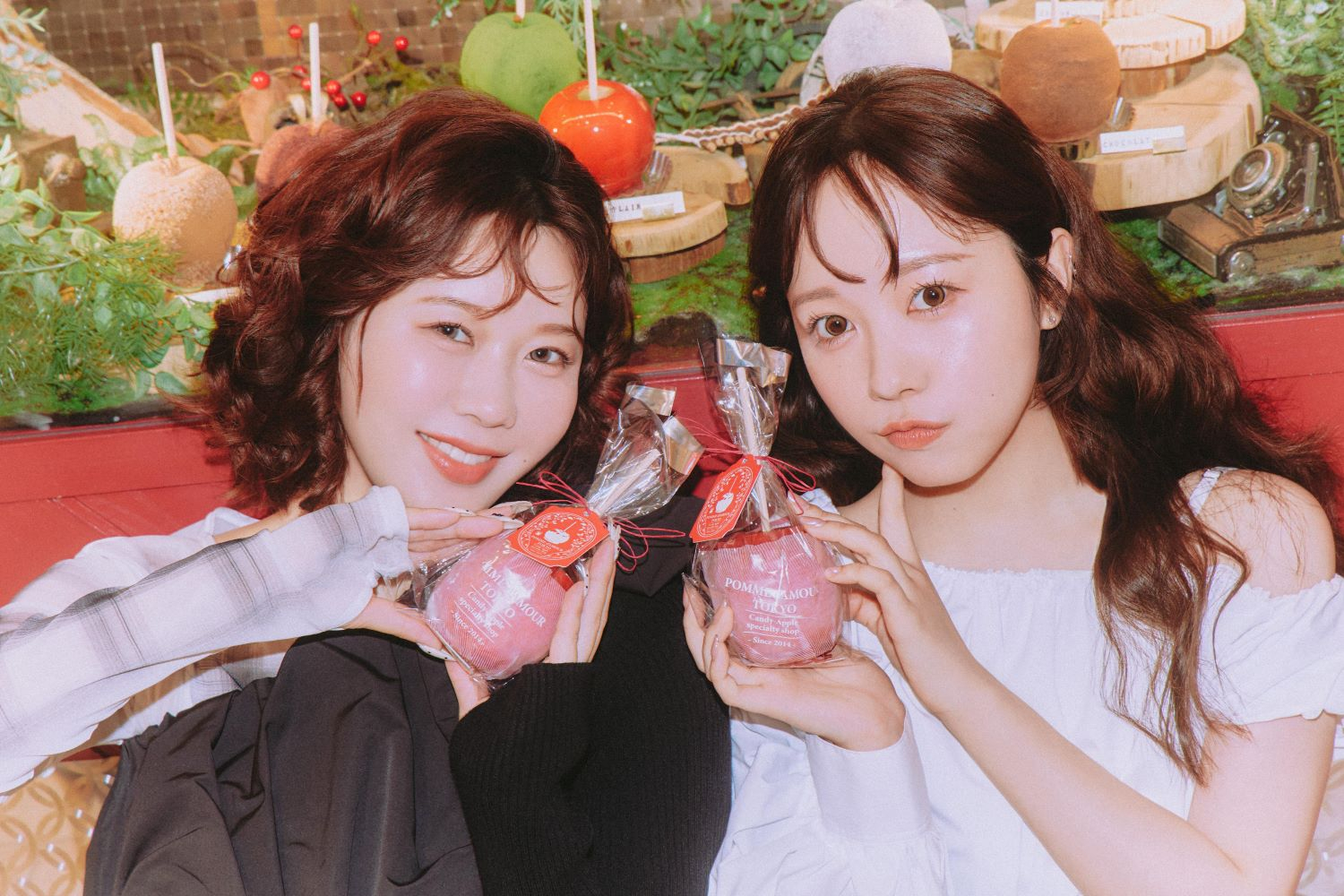 期間限定發售的“Remomello Change蘋果糖”是以兩位活動標誌為印象的黃色×黃綠色的蘋果糖。使用了檸檬×甜瓜奶油蘇打風味的粉,是流行清爽的味道。)