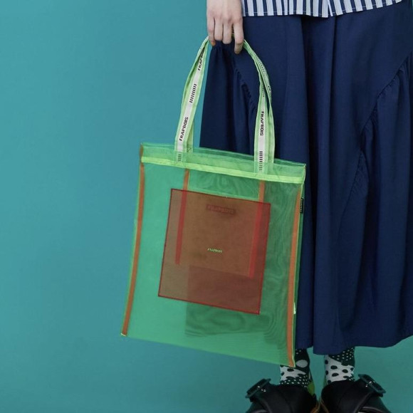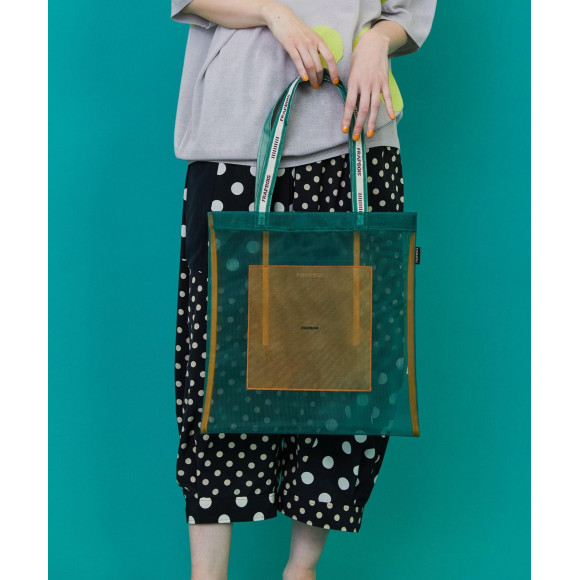 設計:在FRAPBOIS人氣的托特系列中,以雪茄輕為特徵的網狀物素材登場。容易黏糊糊的道具也有素材所具有的彈性感,表現出了很好的感覺。將網狀物的素材重疊在兩種顏色上,呈現出獨特的配色感。中心裡加入了纖細的品牌標誌的刺綉,雖然很簡單,但還是做出了重點。