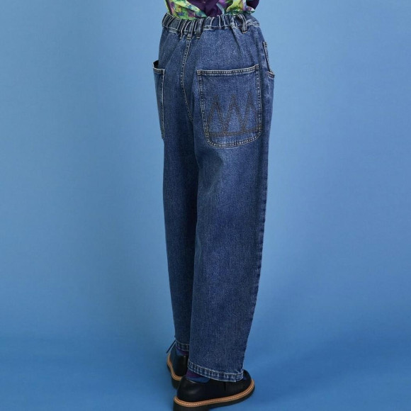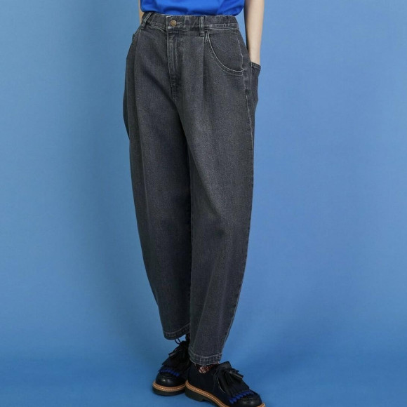 材料:雖然有粗略的表面感,但是豎立著漂亮綾目的牛仔布素材除了外觀的扎實感之外,伸展運動也很有效,所以穿起來方便是重點。藍色是輕巧的化學清洗,稍微懷舊的氛圍,黑色是恰到好處地加入了舊的清洗加工。