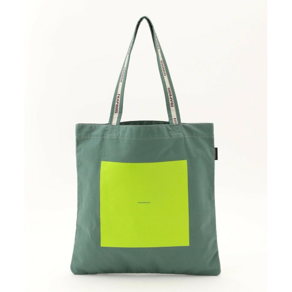 材料: 使用粗糙的表面感的畫布素材,大膽地用配色的印刷完成的托包。