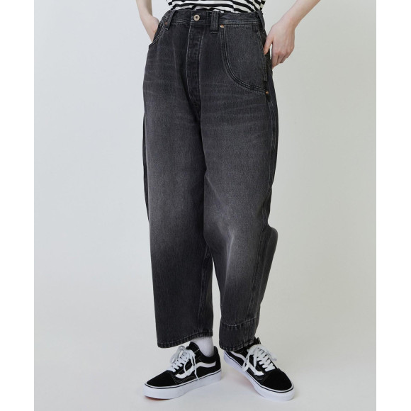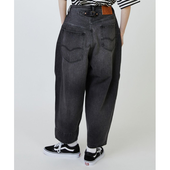 COWBOY PANTS是從工件中派生出來的,為了提高強度,三根針的縫紉工和閃爍的設計是其特徵。以這樣的褲子為基礎畫圓圈,腿上也加深了的軟褶裙的輪廓,左右改變了細節大小的遊戲效果的設計是重點。