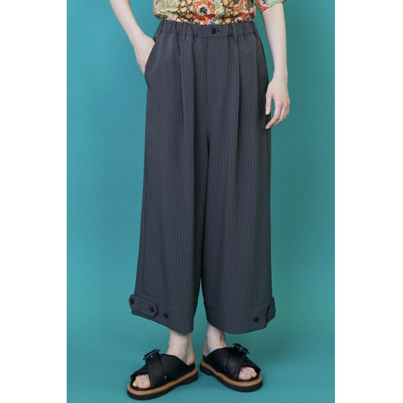 【設計】腰部是橡膠和繩子,簡便的寬直褲子,用素材的漂亮的表情完成了成熟的模樣。通過縮小下擺的標籤,可以將輪廓變成褶皺風等,是適合各種風格的商品。