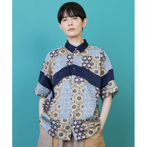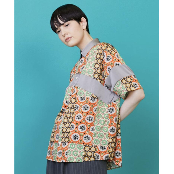 【設計】以寬鬆的放鬆輪廓的襯衫襯衫為基礎,切換成線狀,在那裡加入素色的素材作為重點。通過將具有衝擊力的花紋和有細微差別的素色組合在一起,營造出一種模式的氛圍。