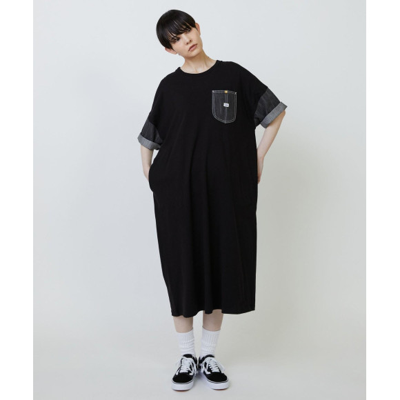 【設計】以寬敞的連衣裙為基礎,袖子、胸口袋、臀圍口袋和牛仔布布料組合在一起。口袋裡的工作風格放鬆的輪廓,給人一種不太帥氣的感覺。嘻哈口袋裡的大“Lee”名字若無其事地成為重音。