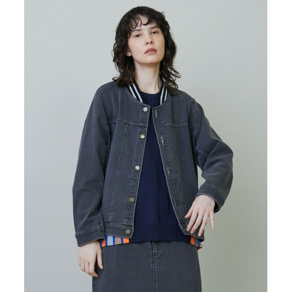 設計:以牛仔夾克的設計為基礎,拘泥於輪廓,雖然很清爽,但還是做出了恰到好處的花束,領子上加上了豎立的線肋條,加入了布朗的要素。為了丟失胸口的口袋,更容易入手旁邊的口袋而重新設計等,采用了日常容易穿的要素。