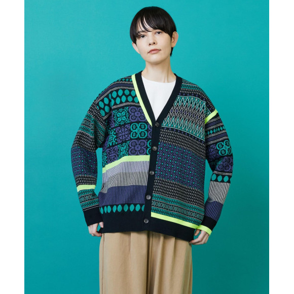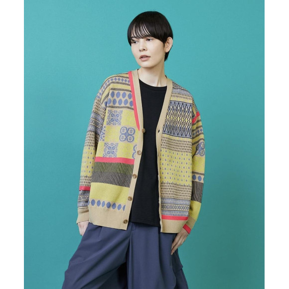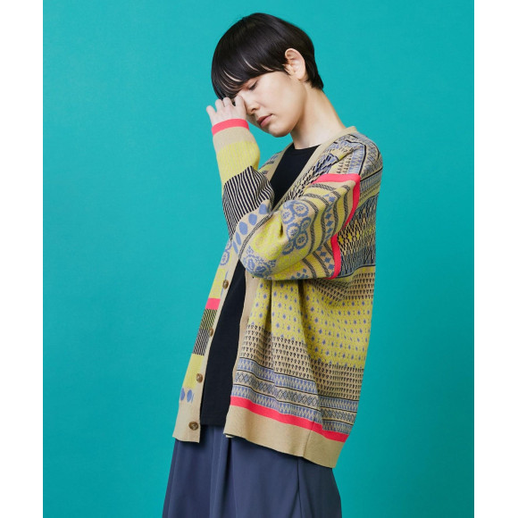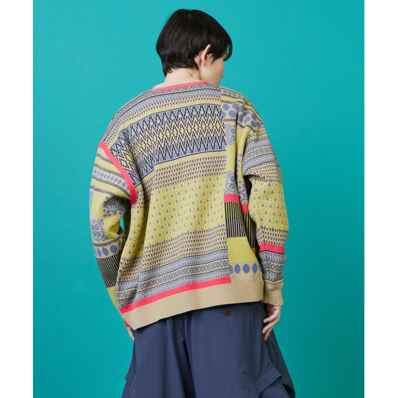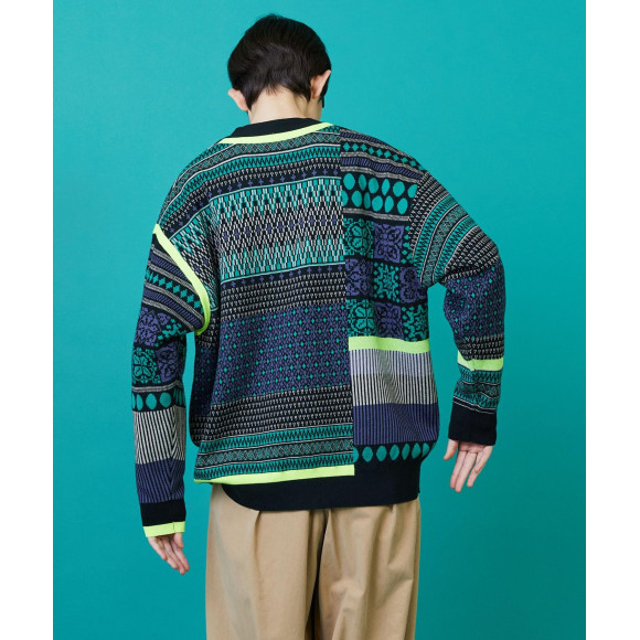 【設計】基本的V項鏈的襟毛衣恰到好處的寬鬆和放鬆的輪廓◎。纖細大膽地組合著像拼湊了一樣的各種編織圖案。部分組合了發色好的顏色,給人一種遊戲效果不太甜的模式。