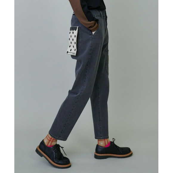 設計:在FRAPBOIS經典人氣的運動鞋,從腰到臀部、大腿都很寬鬆,同時面向下擺使用清爽的褶皺,獨特的輪廓和上衣搭配得很搭,是一個很受歡迎的秘密。大腿的口袋和補丁的名字是愛子的設計點。後腰帶的編織肋條稍微有點運動的表情,品牌特有的遊戲很有效。繞下擺的話點的印刷引人注目,後臀部上有流行點花紋的褶皺,形成了重點。弗拉捨爾即使是硬著頭皮也是可愛的一點。