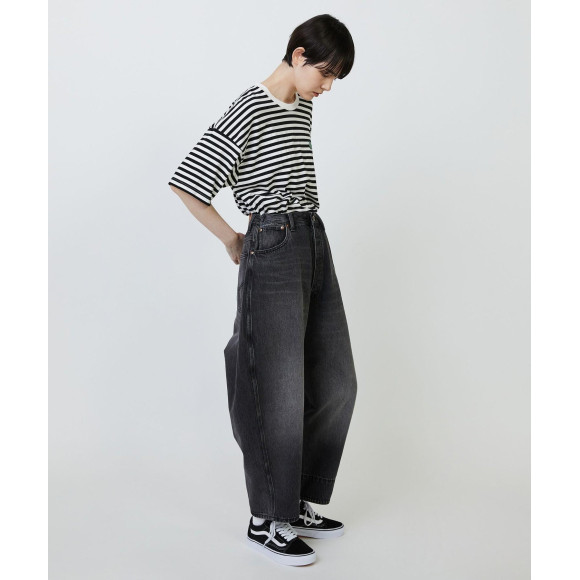 COWBOY PANTS是從工件中派生出來的,為了提高強度,三根針的縫紉工和閃爍的設計是其特徵。以這樣的褲子為基礎畫圓圈,腿上也加深了的軟褶裙的輪廓,左右改變了細節大小的遊戲效果的設計是重點。