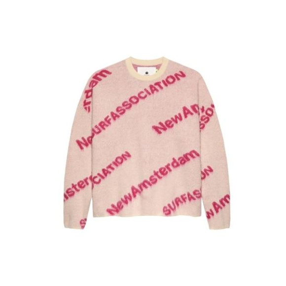 New Amsterdam Surf Association/新阿姆斯特丹衝浪協會/JACQUARD KNIT ECRU/MAGENTA輪廓針織衫