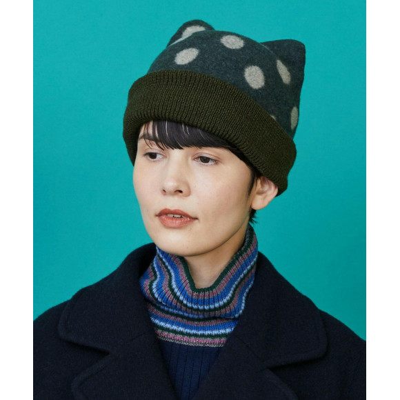 【素材】人氣貓耳系列中加入了FRAPBOIS點圖案的特別版。羊毛的縮絨溫暖和肋骨的重音是重點。