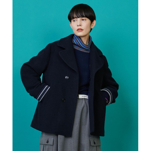 【設計】稍微寬松一點的放鬆輪廓的P大衣型外套比外表輕,穿著舒適是重點。部分加上肋條針織衫,增加了休閒感和其他沒有的設計精華。