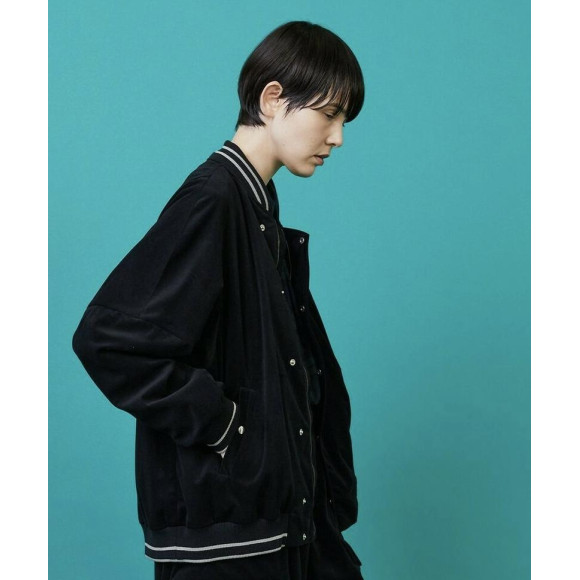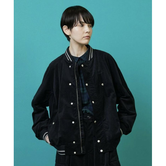 【設計】以軍用風格的夾克為基礎,大大地落下的肩膀形成了輕鬆的輪廓。素材所具有的優雅光澤感成為大人看起來的道具。