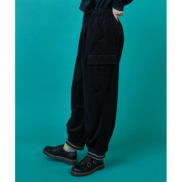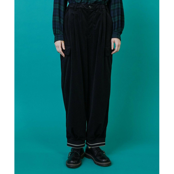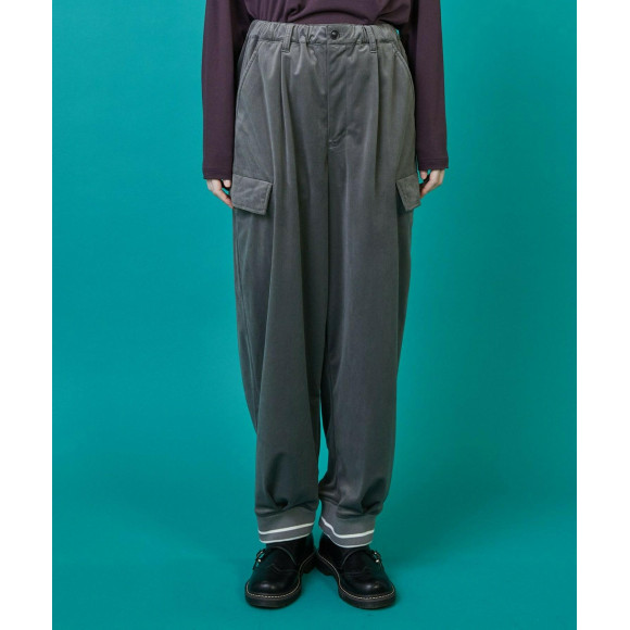 【設計】以軍用風格的卡哥內褲為基礎,寬敞舒適的臀部和大腿周圍,面向下擺緩慢的褶皺,形成了清爽的輪廓。恰到好處的伸展性,穿起來舒適也是重點。