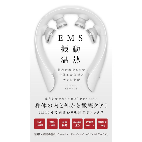 電極上搭載的4個特殊加工加熱器和12個近紅外線LED,從脖子周圍的肌肉表面到深處都能得到充分的溫暖和護理。
